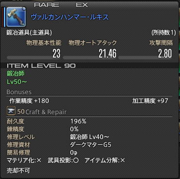 それでは、クラフターを極めるには欠かせない「ルキス装備」の入手方法の攻略情報です。