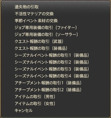 | クラス | アイテム名 | 性能 | 交換品 | |